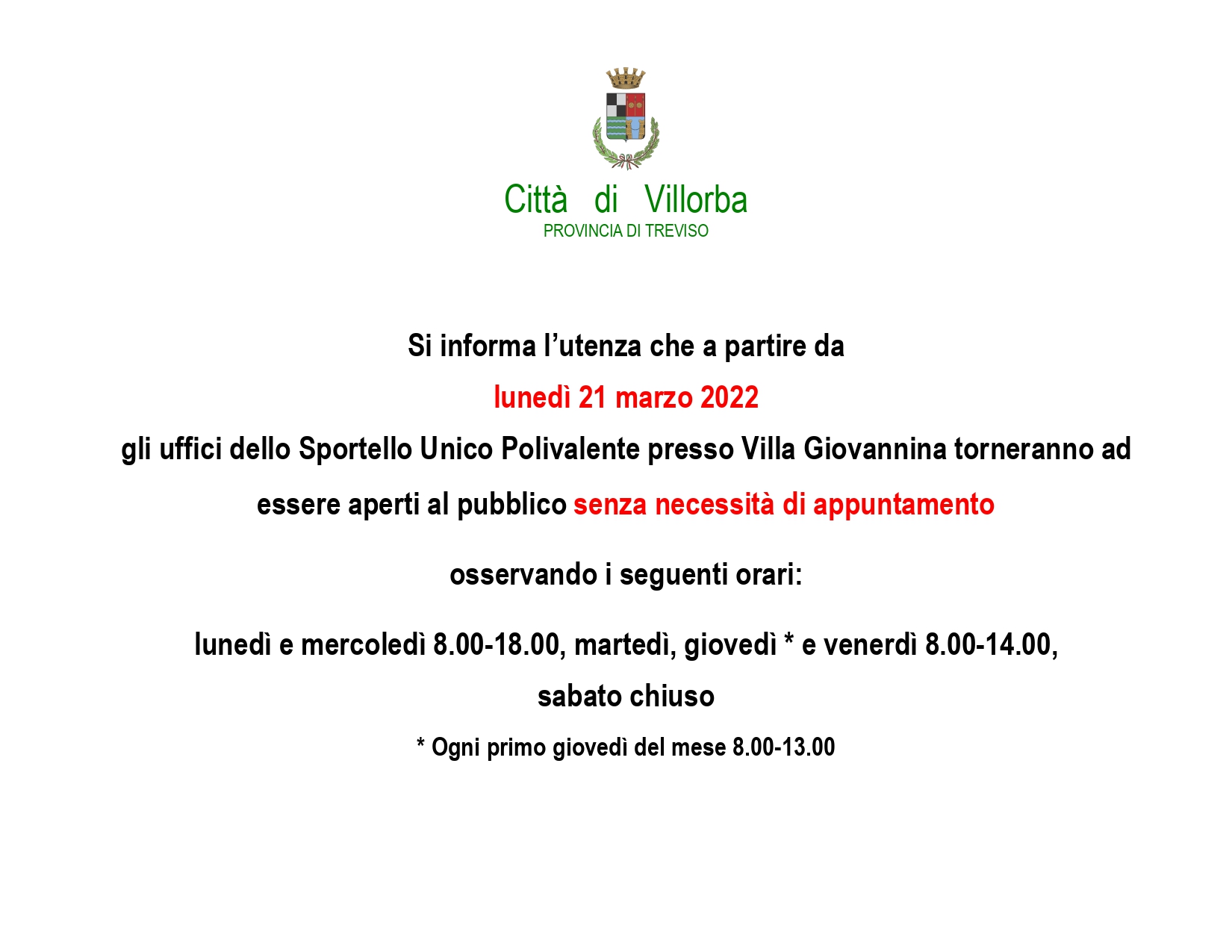 Avviso all'utenza - Apertura S.U.P. senza appuntamento
