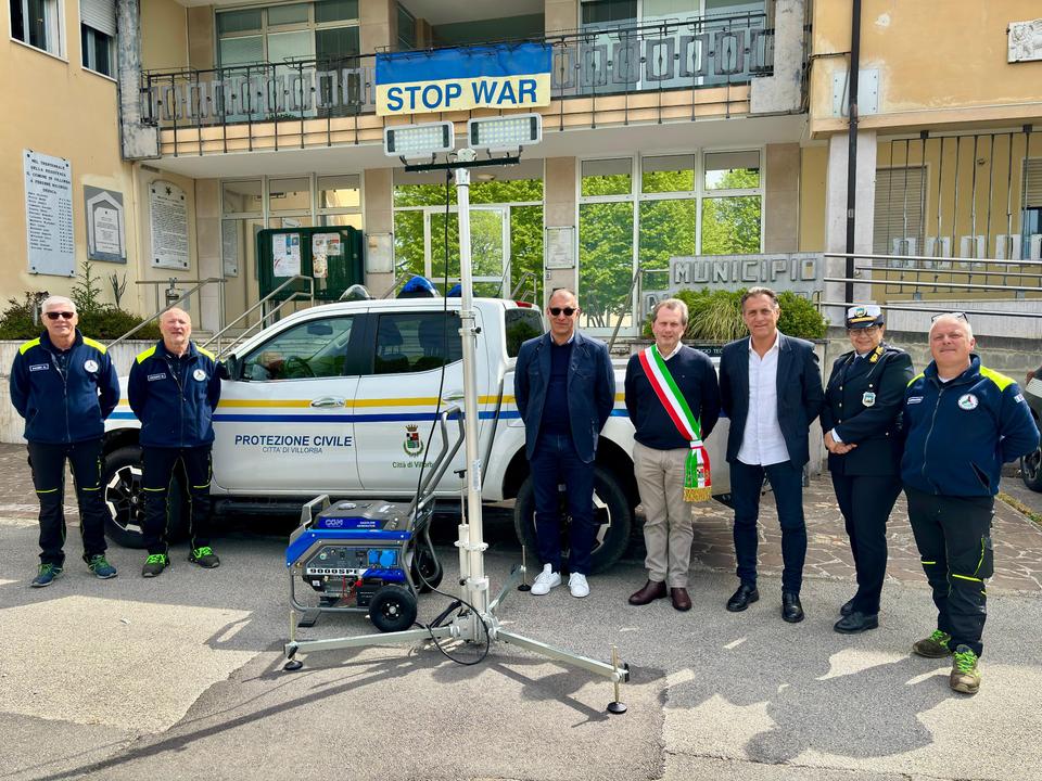 AZIENDA PRIVATA DONA UN NUOVO GRUPPO ELETTROGENO E UNA TORRE FARO ALLA PROTEZIONE CIVILE DI VILLORBALa C.T.M. Srl con sede in via Roma a Carità ha donato alla Protezione Civile di Villorba un gruppo elettrogeno e una torre faro. Stamattina davanti al municipio la consegna del materiale, con i soci dell’azienda Massimo ed Enrico Polli, il sindaco di Villorba Francesco Soligo, il coordinatore della Protezione Civile di Villorba Stefano Camarotto, e la comandante del Corpo Intercomunale di Polizia Locale Barbara Ciambotti.