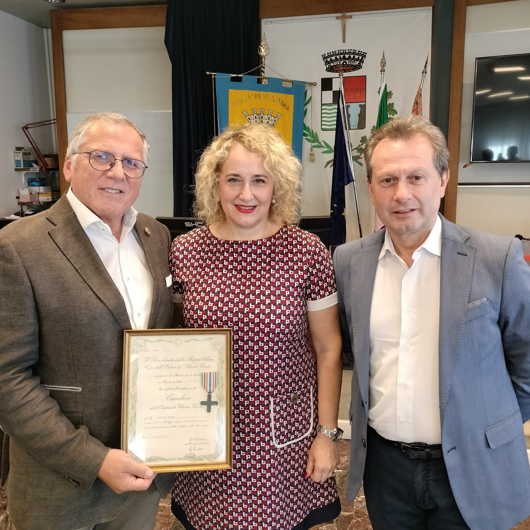 RICONSEGNA ALLA FAMIGLIA DELLA RITROVATA ONORIFICENZA DI CAVALIERE DELL’ORDINE DI VITTORIO VENETO DI ALBINO SCHIAVONIl sindaco Francesco Soligo e il Presidente dell’ISRAA Mauro Michielon hanno consegnato alla signora Bianca Schiavon il documento di onorificenza di Cavaliere dell’Ordine di Vittorio Veneto di suo nonno, Albino Schiavon, uno dei leggendari ragazzi del ‘99