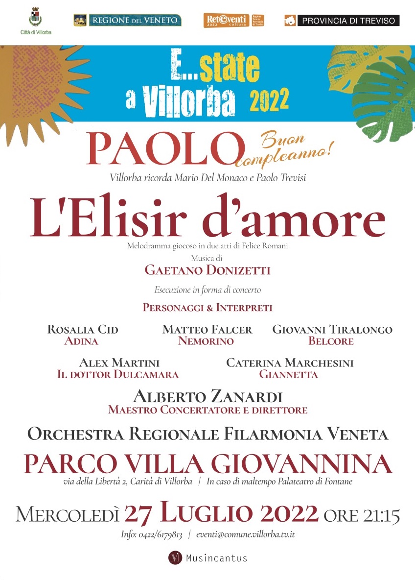 E… state a Villorba propone il 27 luglio la lirica con un melodramma giocoso per ricordare,come da tradizione le figure di Paolo Trevisi e Mario del Monaco.