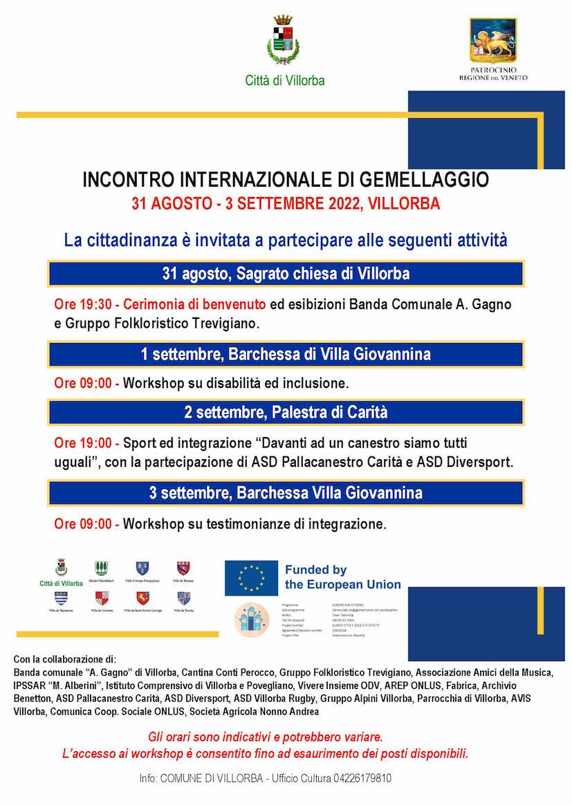 Dal 31 agosto al 3 settembre si svolgerà l’incontro internazionale tra le città europee gemellate con Villorba.