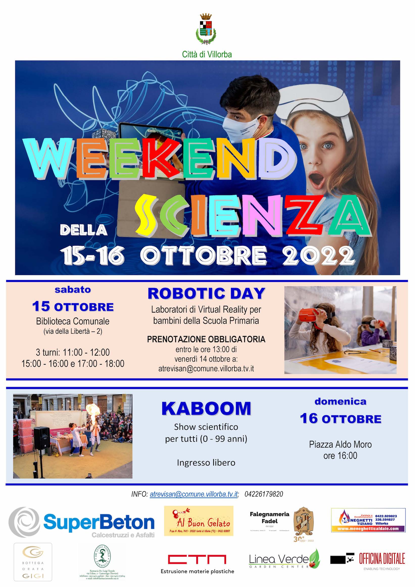Robotica per bambini in Biblioteca e show scientifico per famiglie in piazzaSabato 15 e domenica 16 ottobre prossimo il Comune di Villorba organizzerà due eventi per stimolare l’interesse di bambini e famiglie verso le discipline tecniche e la robotica.