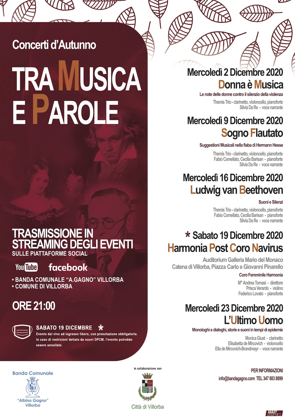 “Tra Musica e Parole”: Concerti d’Autunno in streaming