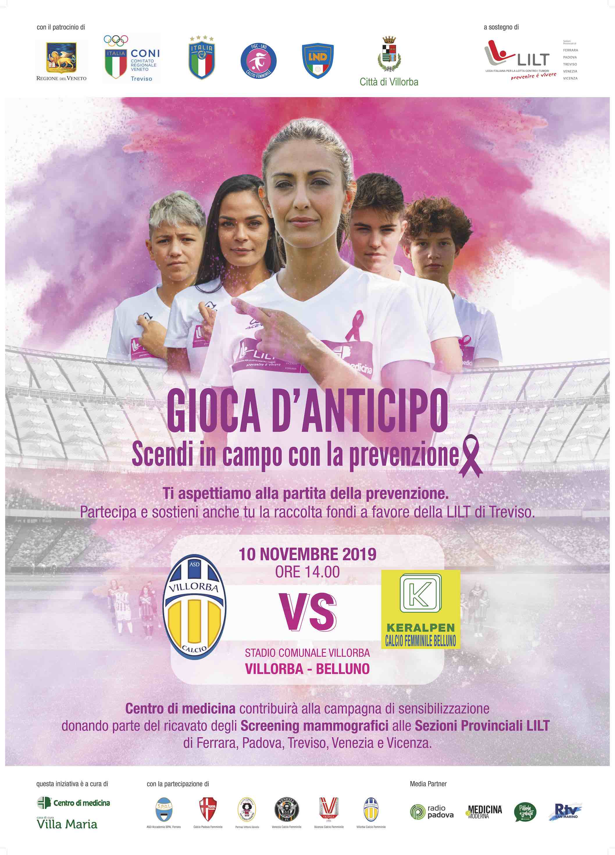 Domenica 10 novembre alle 14:00 allo stadio comunale di Villorba scenderanno in campo le squadre di Calcio Femminile di Villorba e di Belluno per una gara ufficiale del Campionato Eccellenza e come iniziativa per la raccolta fondi pro Lilt Treviso