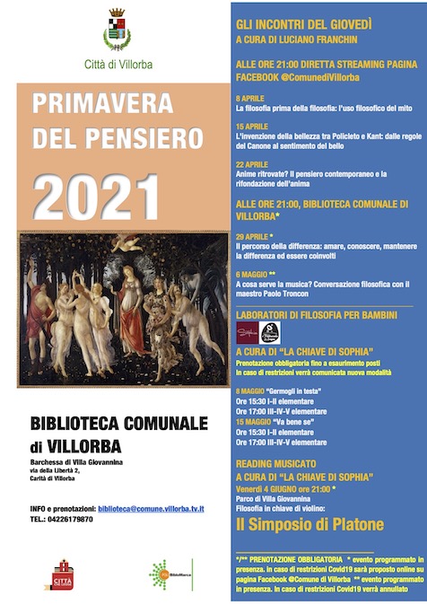 L’Amministrazione Comunale di Villorba ripropone online e, se sarà possibile anche in presenza, il ciclo di incontri culturali dedicato al mondo della filosofia